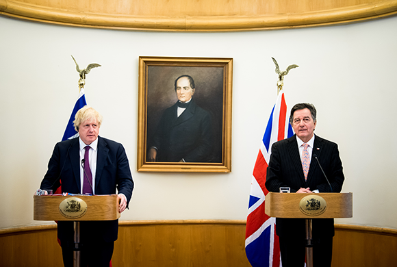 El Canciller Roberto Ampuero recibió hoy en audiencia al Secretario de Estado para las Relaciones Exteriores del Reino Unido, Boris Johnson. En el encuentro, las autoridades destacaron el excelente estado de la relación bilateral y abordaron materias de interés común.