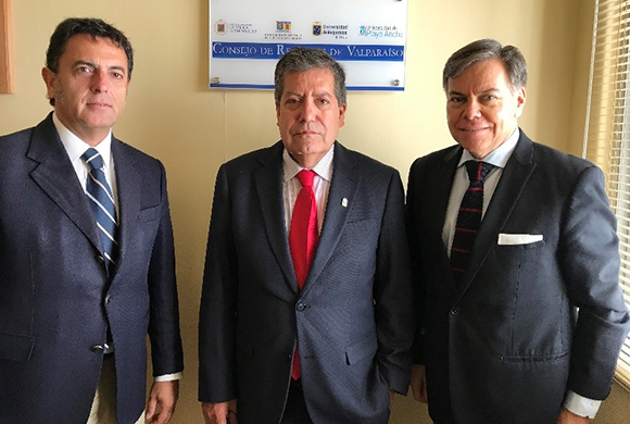 El Embajador Paulsen sostuvo además un encuentro con el rector de la Universidad de Playa Ancha y actual Presidente del Consejo de Rectores, Patricio Sanhueza, quien además es Presidente de la Agrupación de Universidades Regionales de Chile (AUR), organización conformada por 22 universidades desde Arica a Punta Arenas, con amplia y variada agenda internacional en distintos países y continentes.
