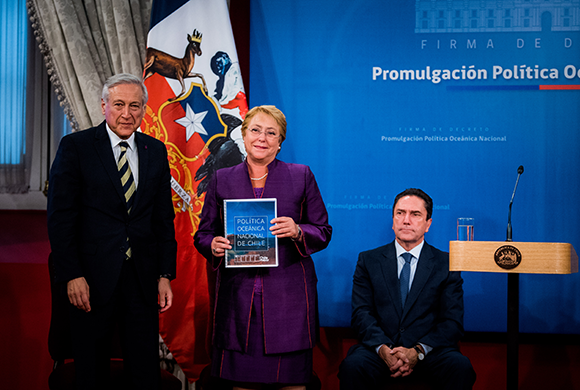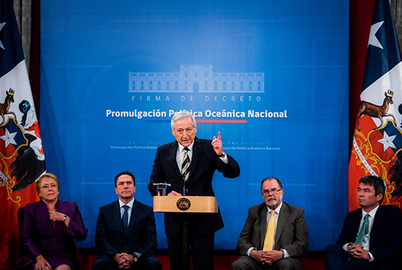 El Canciller Heraldo Muñoz, encabezó hoy, con la Presidenta Michelle Bachelet, la ceremonia de promulgación de la Política Oceánica Nacional, realizada en el Salón Montt Varas del Palacio de La Moneda.