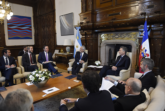 Una reunión con el Presidente de Argentina, Mauricio Macri, y la suscripción de acuerdos en las áreas de energía, ciberseguridad, encadenamiento productivo y firma digital, fueron parte de la visita oficial a Argentina realizada este jueves 26 de abril. En ella, el Ministro de Relaciones Exteriores, Roberto Ampuero, acompañó al Presidente de la República, Sebastián Piñera.