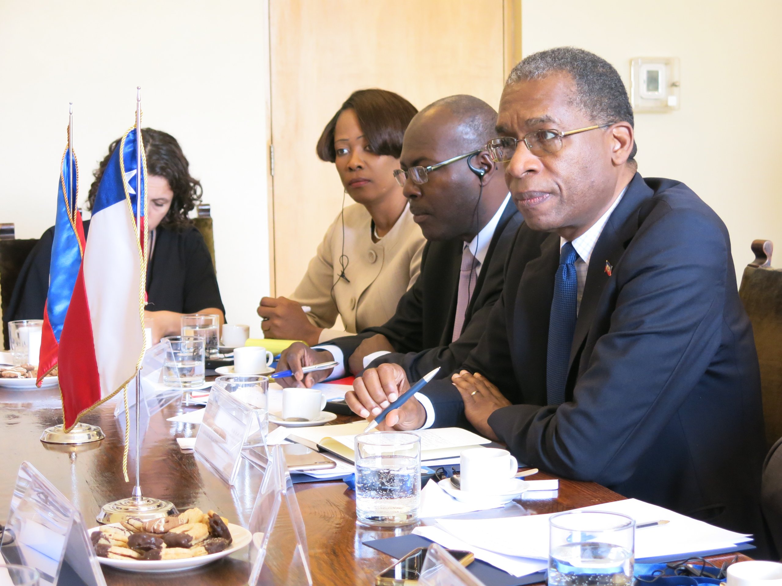 El Director General de Asuntos Consulares y de Inmigración, Embajador Carlos Appelgren, y el Embajador de Chile en Haití, Patricio Utreras, recibieron hoy al Ministro de Relaciones Exteriores de Haití, Antonio Rodrigue, con el propósito de realizar la primera reunión bilateral entre ambos países y abordar las temáticas y desafíos sobre los asuntos consulares y migratorios entre ambos países.