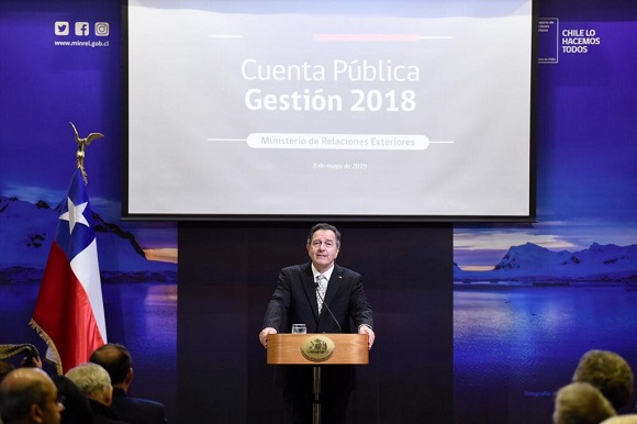 Más adelante, informó que durante 2018 el Presidente de la República visitó 15 países, concentrando el trabajo en América, Europa, Asia y Oceanía. Asimismo, señaló que Chile tuvo una activa participación en el sistema multilateral, reafirmando el compromiso con la paz, la seguridad internacional y la Agenda 2030 para el Desarrollo Sostenible. "El compromiso de nuestro país con el multilateralismo no acepta dudas. Quien plantee lo contrario se equivoca de manera rotunda", aseguró.
