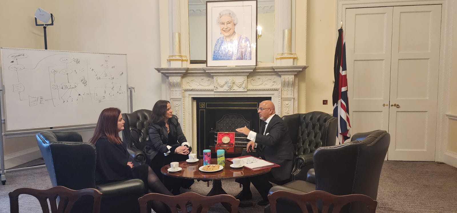 Tras su arribo, se reunió con el Canciller del Ducado de Lancaster, Nadhim Zahawi, donde abordaron las oportunidades para desarrollo bilateral en energías renovables, océanos y adaptación al cambio climático.