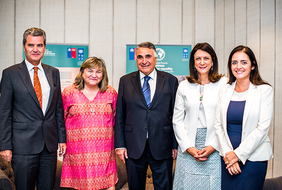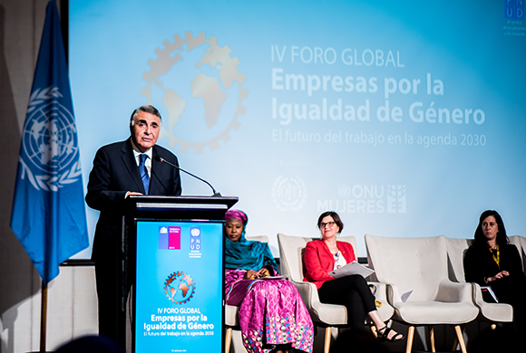 El Subsecretario de Relaciones Exteriores, Edgardo Riveros, participó ayer en la clausura del IV Foro Global de Empresas por la Igualdad de Género, iniciativa organizada por el Gobierno de Chile y el Programa de las Naciones Unidas para el Desarrollo (PNUD) en alianza con ONU Mujeres y la Organización Internacional del Trabajo. También participaron en el cierre de la actividad la Ministra de la Mujer y la Equidad de Género, Claudia Pascual y la Vicepresidenta y Ministra de Asuntos la Mujer de la República de Gambia, Fatoumatta Jallow-Tambajang.