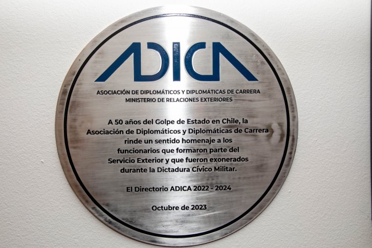 Durante el acto, realizado en el piso 17 del Ministerio de Relaciones Exteriores, el Presidente de Adica, Fernando Guzmán, develó una placa y un cuadro conmemorativo. En representación de los funcionarios del Servicio Exterior exonerados, participó el excanciller Mariano Fernández, además de los exembajadores Marcia Covarrubias y Juan Pablo Lira.