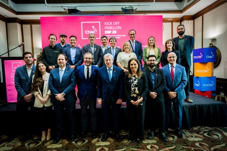 Fernández agregó que “por segundo año consecutivo ProChile aportó con el diseño del pabellón de Chile en la COP28. Diseñamos un espacio de 140 metros cuadrados que recoge las temáticas de transición energética, el que será el punto de encuentro para la delegación de Chile y sus contrapartes internacionales”.