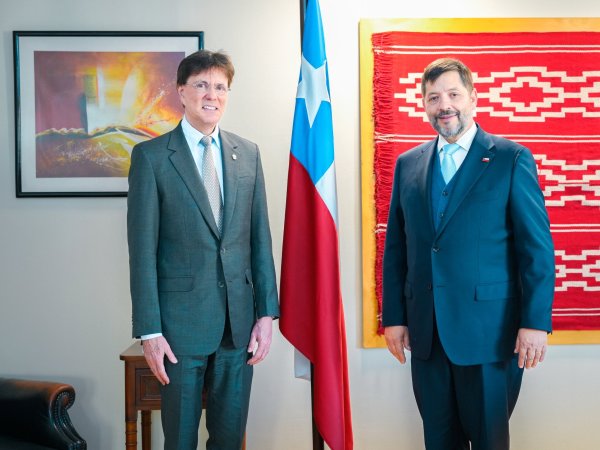 Lunes 20 de abril de 2026 Canciller se reúne con el gobernador de Antofagasta y destaca ventajas del Corredor Bioceánico Vial para la zona norte del país