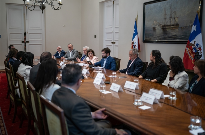 El canciller Alberto van Klaveren participó esta mañana en la entrega de la Estrategia Nacional de Minerales Críticos por parte del Comité Consultivo de Alto Nivel al Presidente de la República, Gabriel Boric Font.