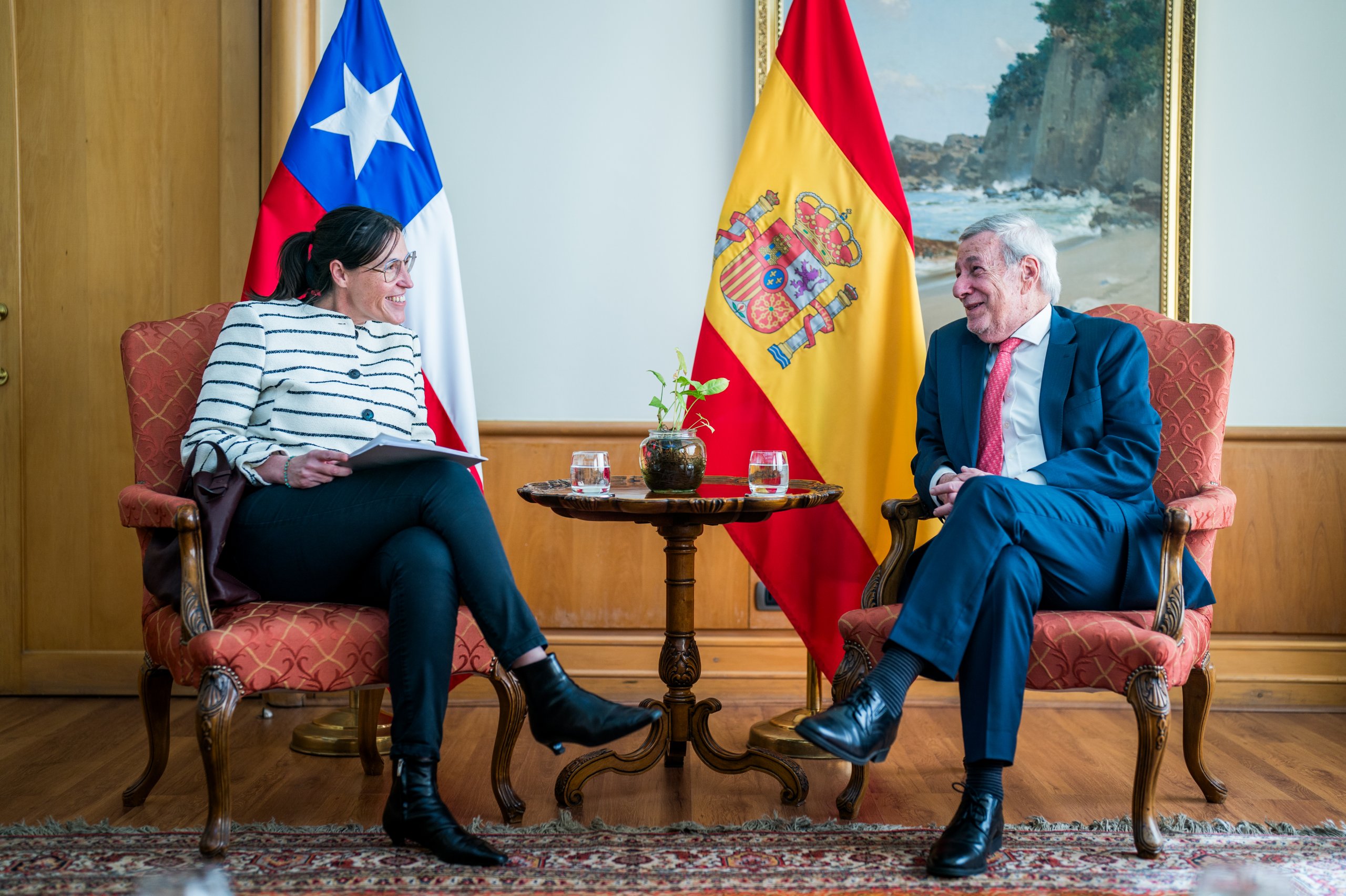 El ministro de Relaciones Exteriores, Alberto van Klaveren, se reunió con la embajadora de España en Chile, Laura Oroz, quien presentó sus cartas credenciales el 13 de agosto pasado.