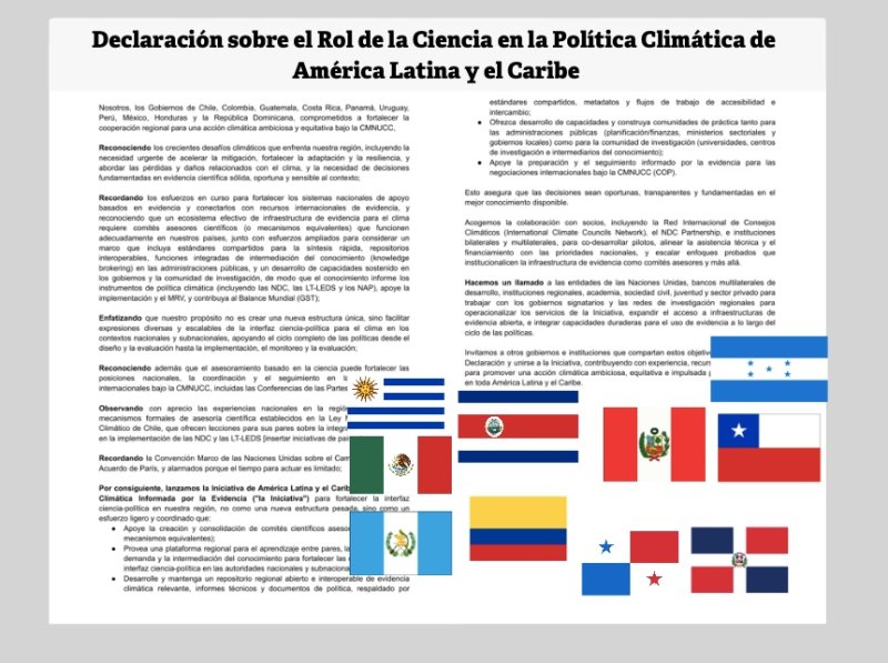 En el acto participaron representantes de Chile, Colombia, Guatemala, Costa Rica, Panamá, Uruguay, Perú, México, Honduras y la República Dominicana, y fue encabezado por la ministra de Medio Ambiente, Maisa Rojas, quien destacó la urgencia de contar con decisiones fundamentadas en evidencia sólida y oportuna para enfrentar los crecientes desafíos climáticos, desde la mitigación hasta las pérdidas y daños.