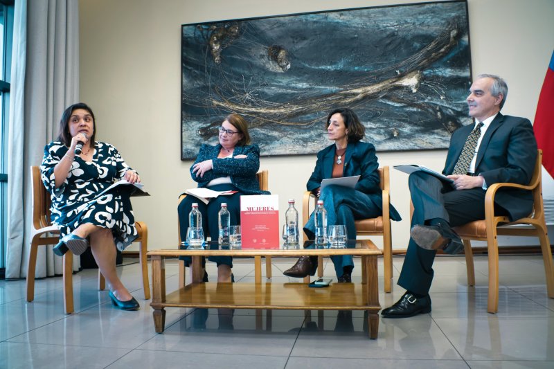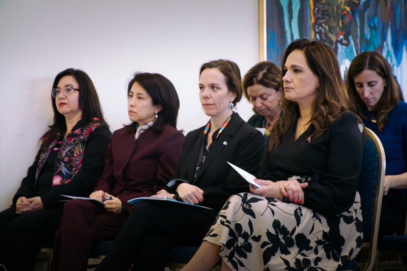 Tras la presentación de la subsecretaria, se realizó un conversatorio que fue moderado por la embajadora de México en Chile, Laura Moreno, y que contó con la participación de la embajadora de Uruguay en Chile, Ana Rocanova; el embajador de Brasil en Chile, Paulo Pacheco, y la coordinadora residente de ONU en Chile, María José Torres.
